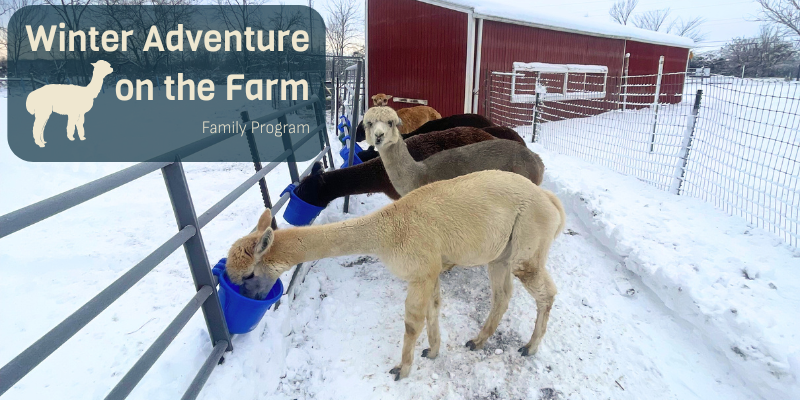 Bunle up to celebrate the beginning of a new year and join us for a Winter Adventure on the Farm! Children and their grown-ups will explore the peaceful beauty of the farm in winter, meet our animal friends up close, and learn how they stay cozy through this chilly season. Participants will have the chance to greet and pet a friendly alpaca, feed our playful goats and curious chickens, and experience the magic of farm life in the snow.